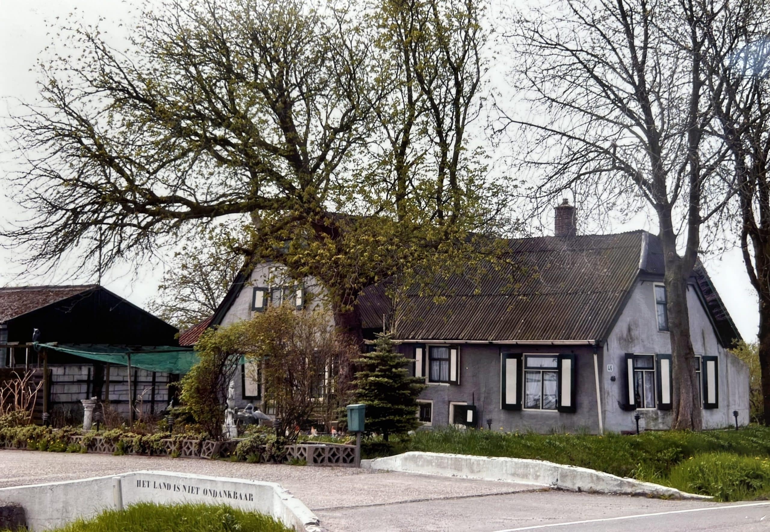 Boerderij uit de 18e eeuw, onderkelderd en met rieten wolfdaken. In het woongedeelte is een